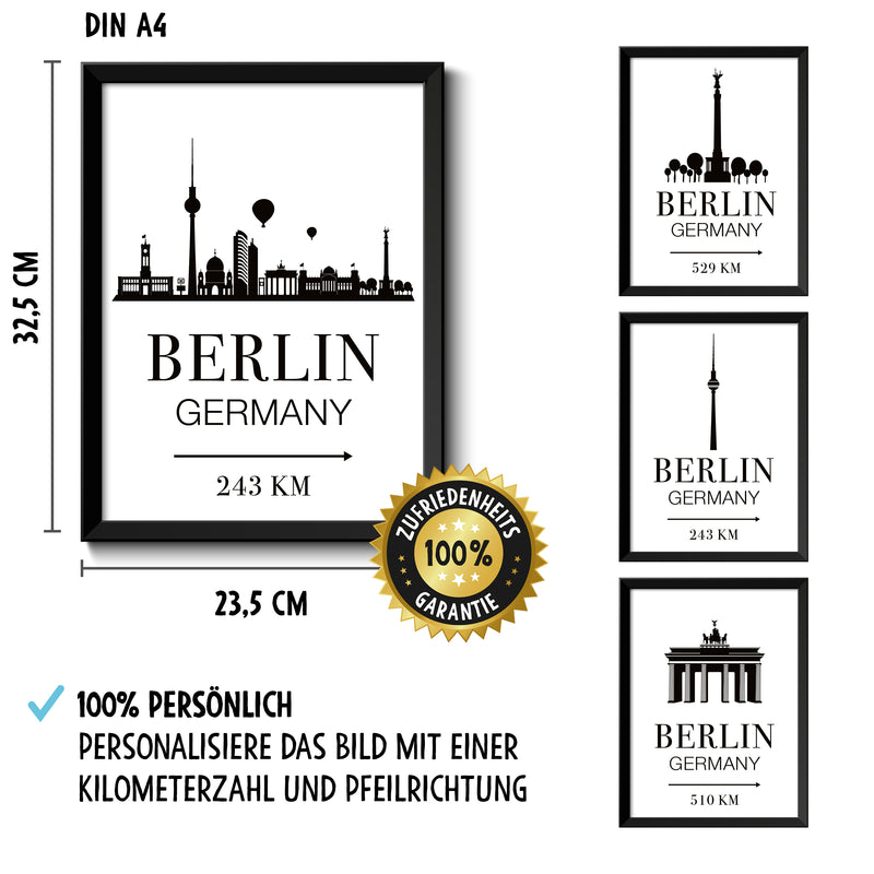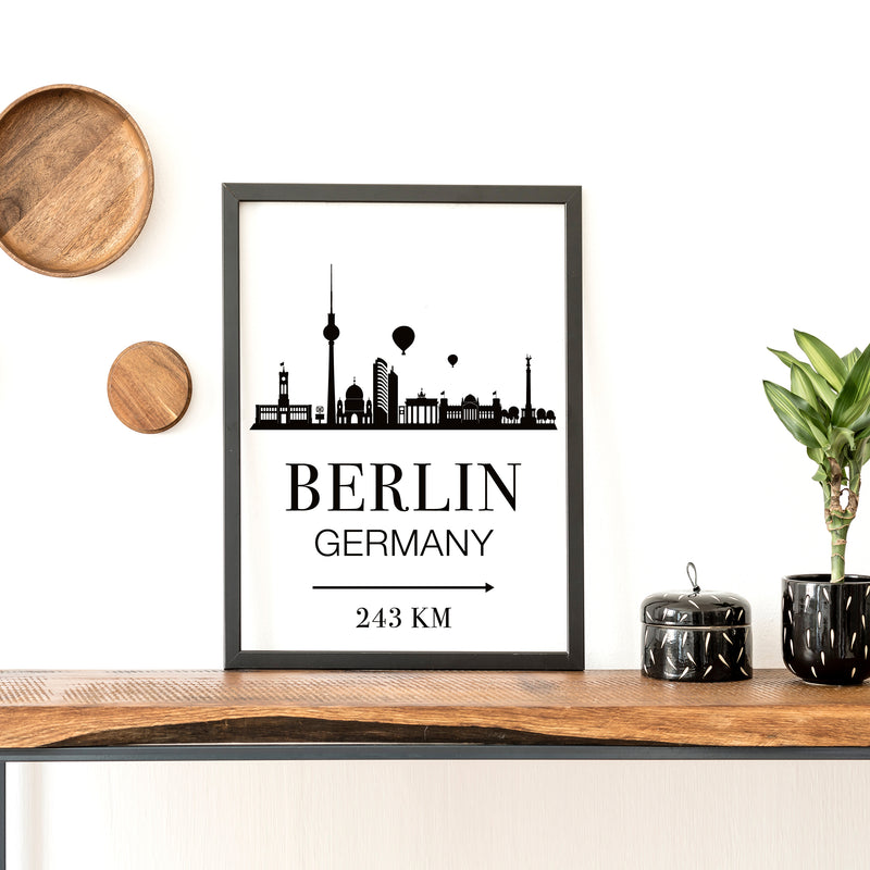 Berlin Skyline Bild optional im Holz-Rahmen Geschenke Geschenkideen für Berliner und Berlin-Liebhaber zum Geburtstag Weihnachten