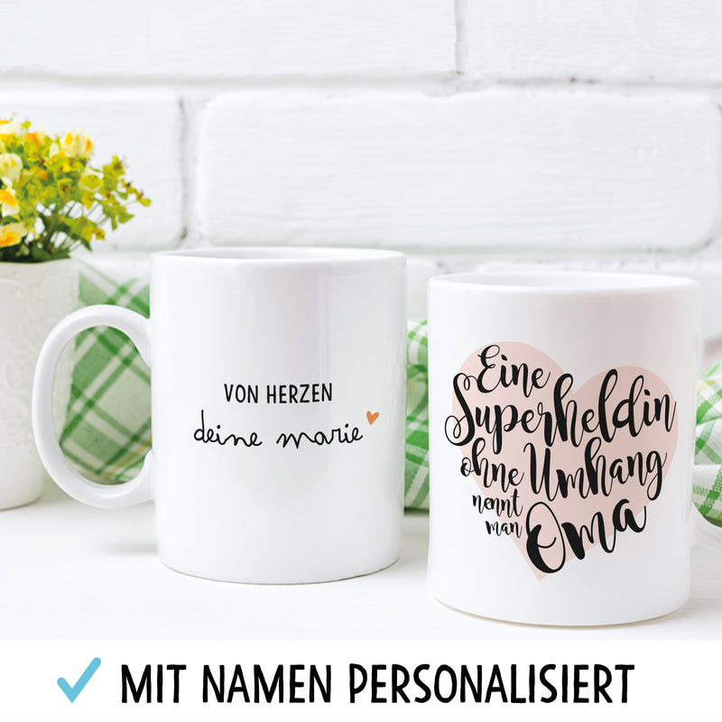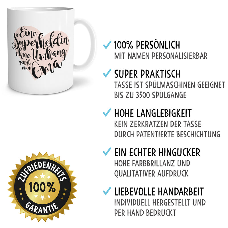 OWLBOOK Superheldin Oma große Kaffee-Tasse mit Namen personalisiert im Geschenkkarton schöne Geschenkidee Geschenke für Deine Großmutter
